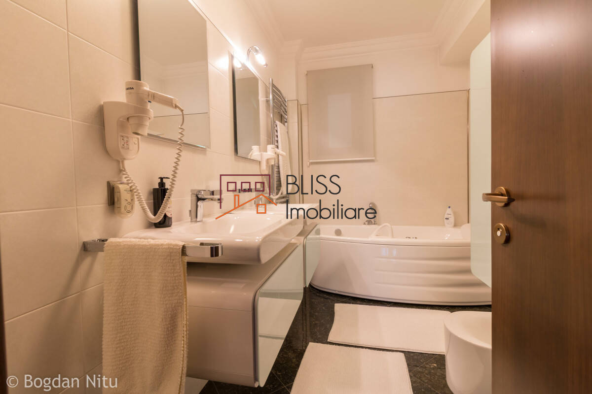 Toate dormitoarele au bai proprii. Fiecare apartament are cada de baie JACUZZI cu hidromasaj, cabina de dus TEUCO cu sauna umeda/uscata si hidromasaj terapeutic, centrala termica centralizata, sistemele de climatizare performante, cablu tv, internet, interfon.
