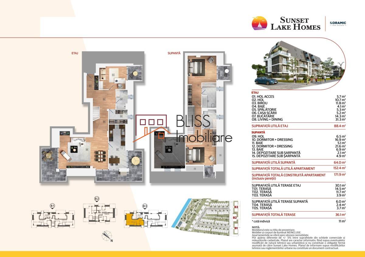 BLISS Imobiliare va prezinta un apartament spatios, situat in ansamblul Sunset Lake Homes.