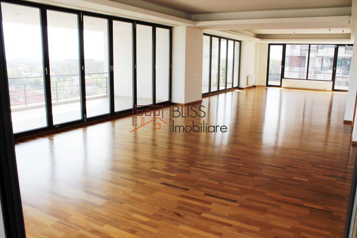 Penthouse deosebit de 243 mp situat intr-un complex rezidential modern, Liziera, in apropiere de Scoala Americana, vis-a-vis de padurea din Pipera.