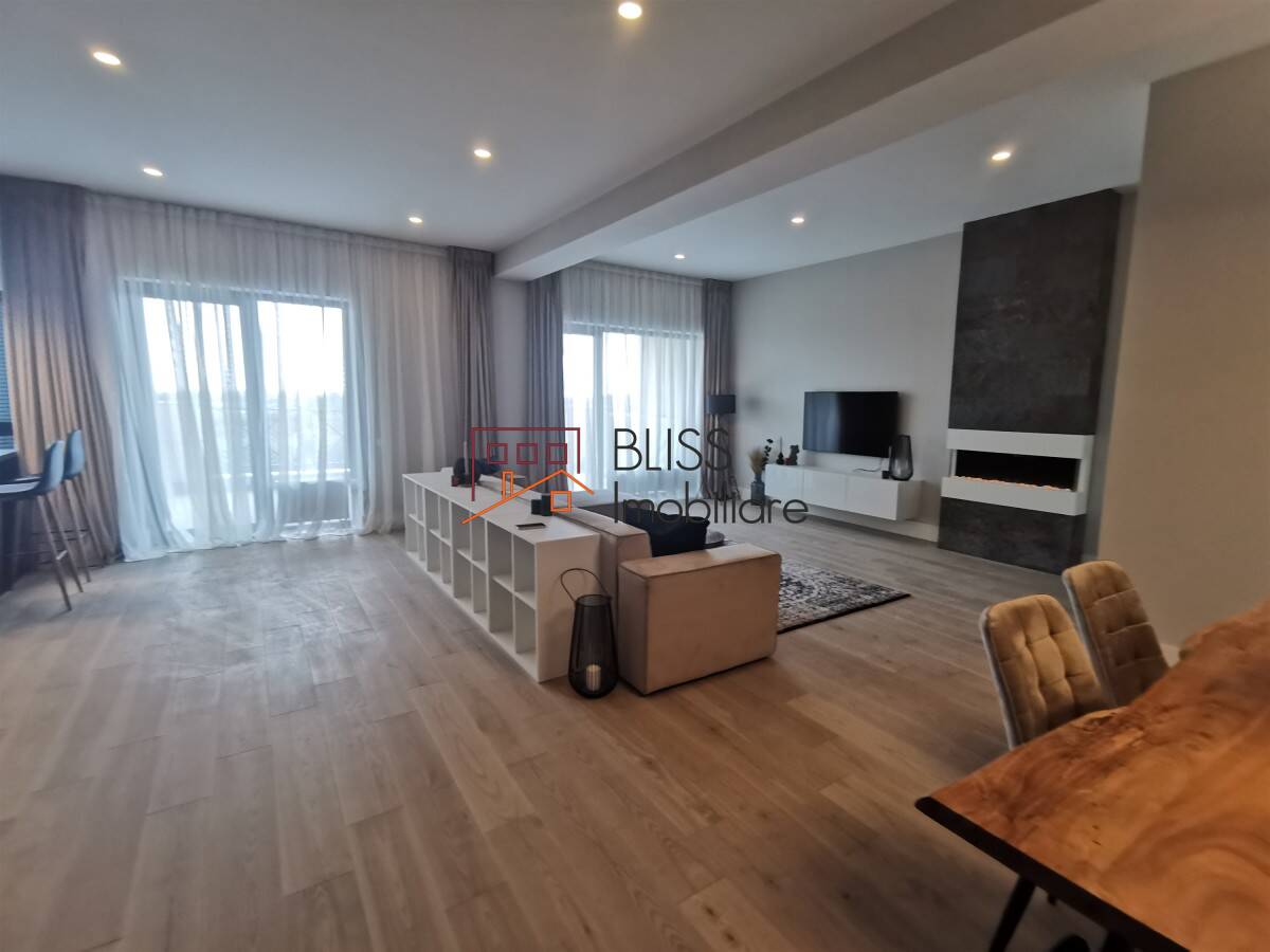Penthouse tip duplex cu 4 camere, mobilat lux si modern, în Complexul Rezidențial Triana, situat pe Bulevardul Pipera. Cu o terasa pe acoperis de 150mp.