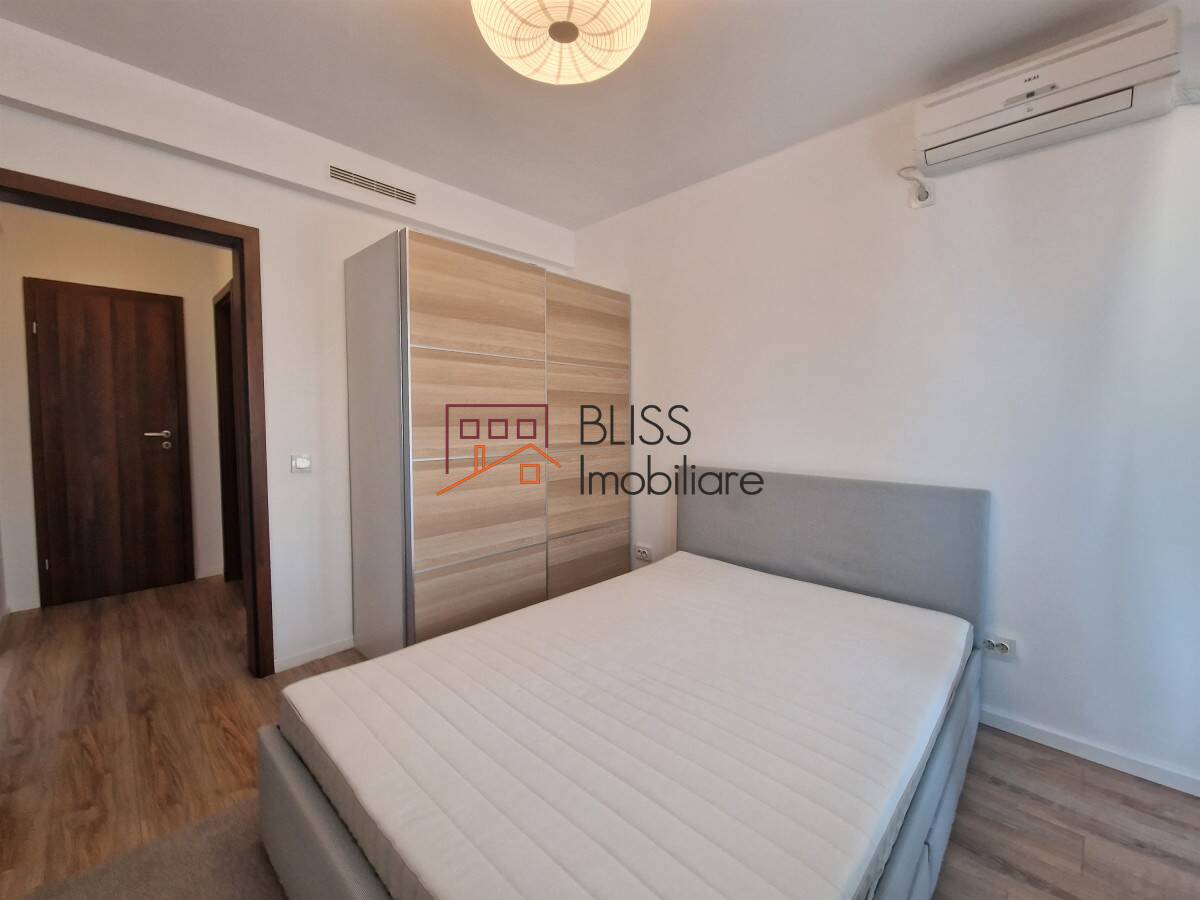 The bedroom benefits from a double bed and Ikea brand wardrobe and access to the spacious balcony overlooking the green and quiet area of the Floreasca neighborhood, being an oasis of peace and relaxation where you can enjoy the time spent with your loved ones.