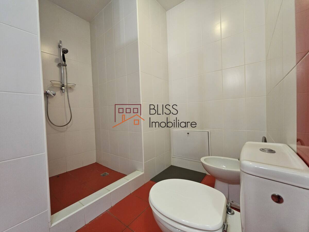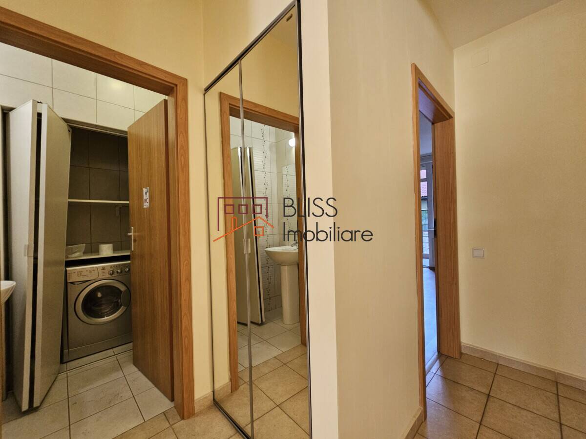 Public transportation is readily available, with a bus stop in front of the building connecting you to the Pipera metro station and the city.