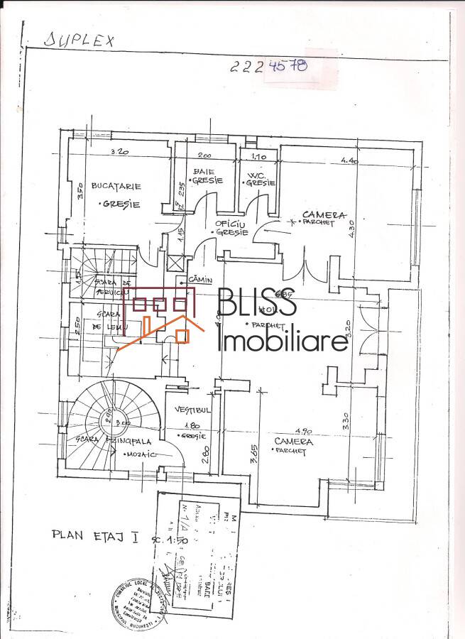 Duplex apartment, situated on 2 intermediate floors (1st floor and 2nd floor) located in the villa (Gf + 3) with special architecture (built by the Cantacuzino family) in the Aviatorilor area, with a surface of 200sqm.