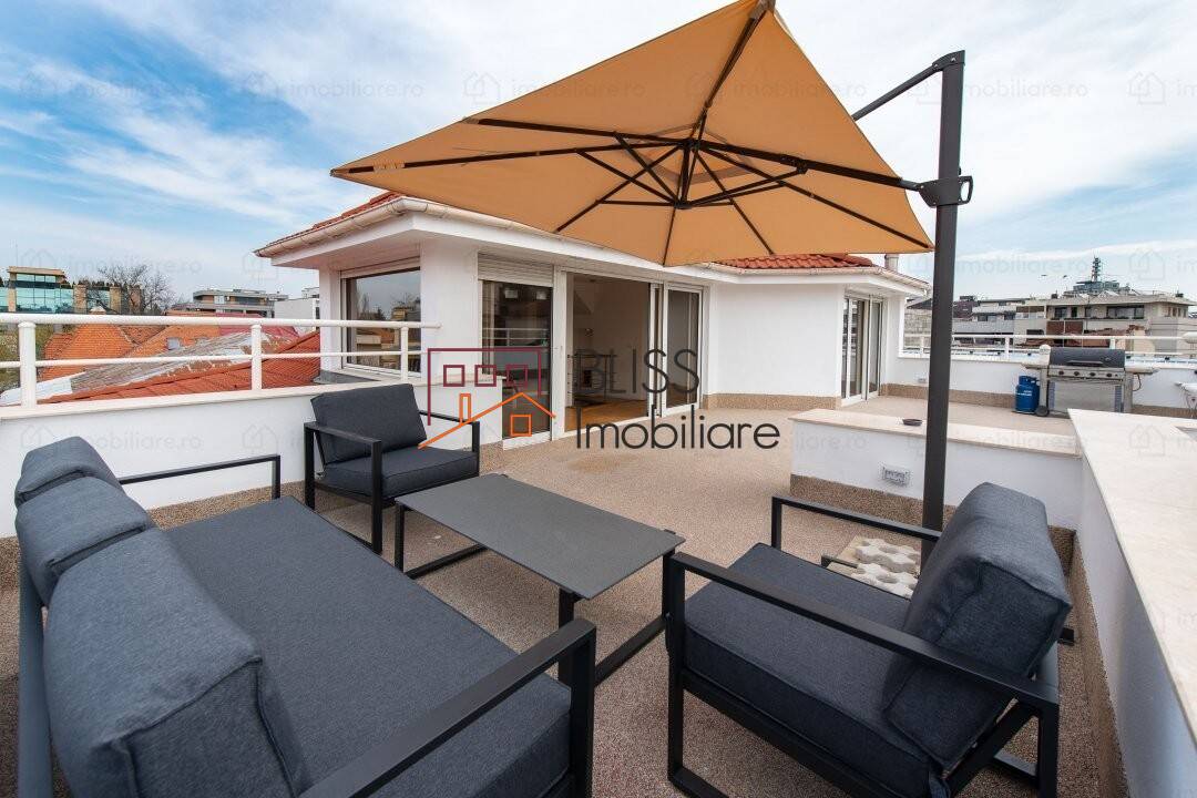 For rent 3 bedroom penthouse with private elevator, firepace and terrace Kiseleff, Bucharest