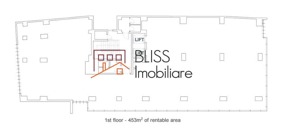 - The building offers a total leasable area of 2,460 square meters divided into the ground floor and 5 upper floors, the floor area varies between 134 square meters and 453 square meters.