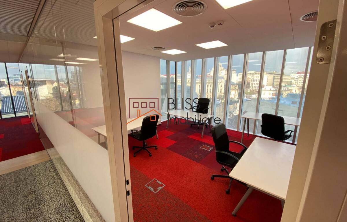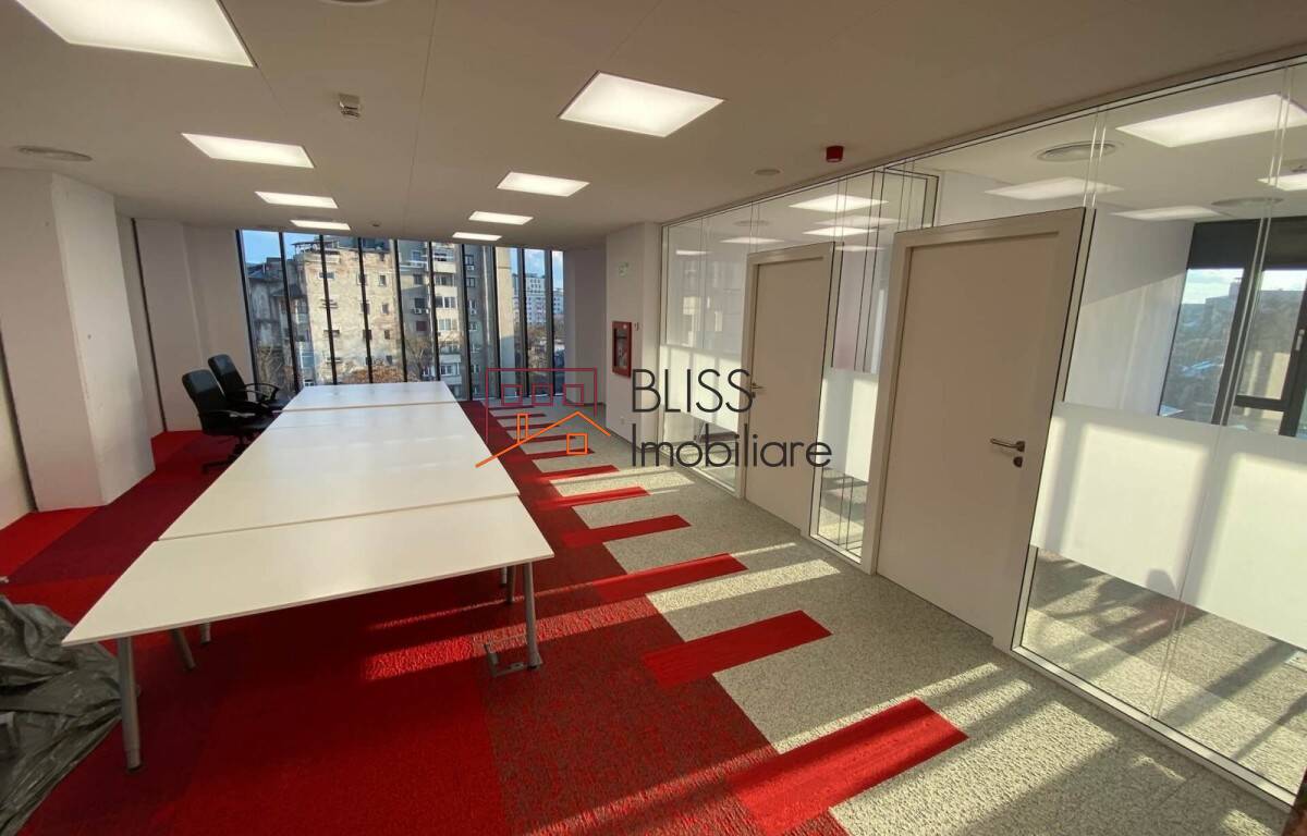- The building has modern and quality specifications such as 4-pipe HVAC, suspended ceiling, kitchen space on each floor, and others. The building also has dedicated underground parking spaces with direct access from Dacia Boulevard, which is in front of the building.