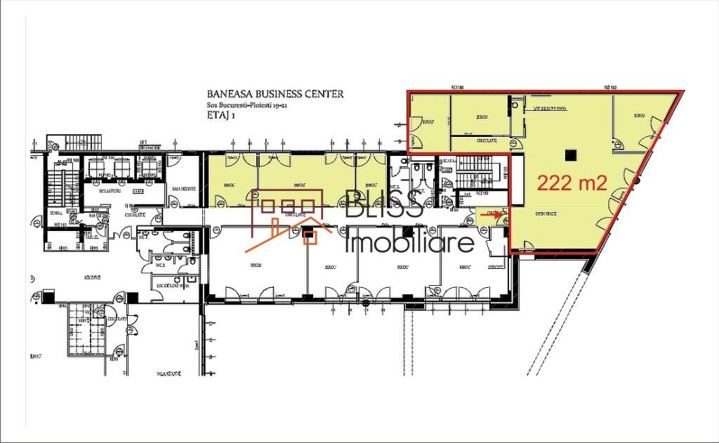 On the 1st floor of Băneasa Business Center, a 222 sqm office space is available, designed as a mix of open space and 3 private offices, ideal for companies seeking a modern and efficient workplace in northern Bucharest.