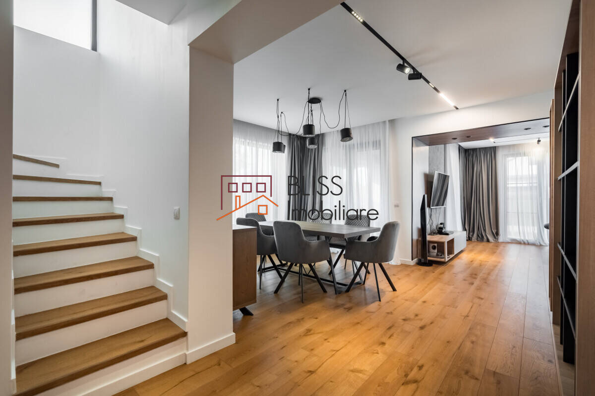 This beautifully designed 3-bedroom villa offers the perfect blend of elegance and comfort, located just 10 minutes from the Aurel Vlaicu/Floreasca business area. Ideal for those who wish to live near key business hubs and the most exclusive shopping and leisure facilities in the northern part of Bucharest, the villa is available fully furnished and equipped.