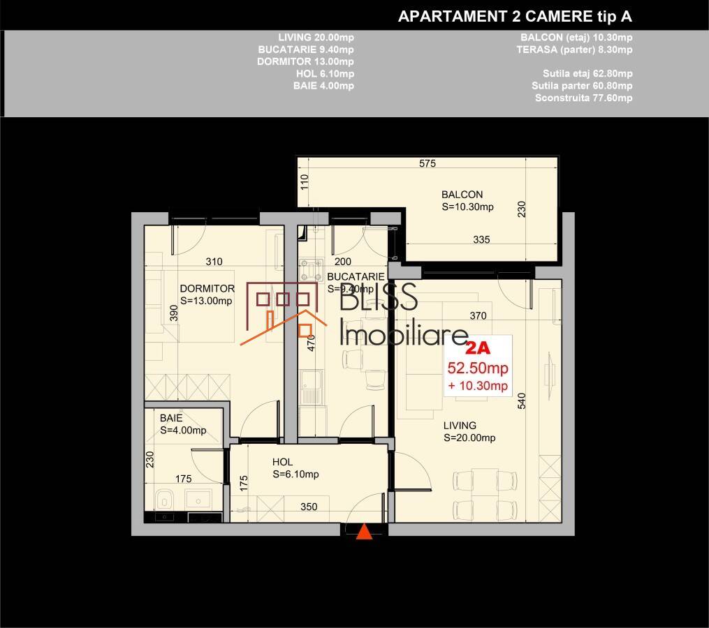 Apartamentul are o suprafata utila de 63mp (suprafata construita de 78mp) divizata astfel: