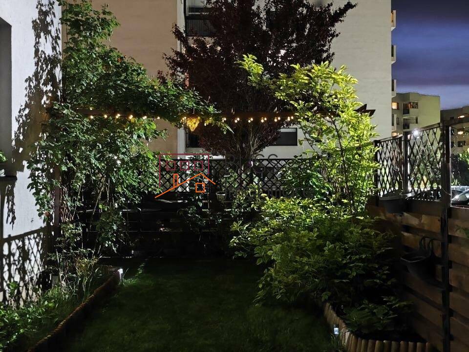 Grădina privată este un adevărat colț de natură: un foișor de 12 mp închis cu folie permite utilizarea pe tot parcursul anului, iar spațiul verde este întreținut impecabil, cu sistem de aspersoare automatizat. O magazie de 8 mp cu rafturi și banc de lucru oferă spațiu practic pentru depozitare. Decorul este completat de plante ornamentale și pomi fructiferi: de la lavandă și trandafiri, la piersici, smochine și fructe de pădure, totul contribuie la un cadru intim și plin de viață.