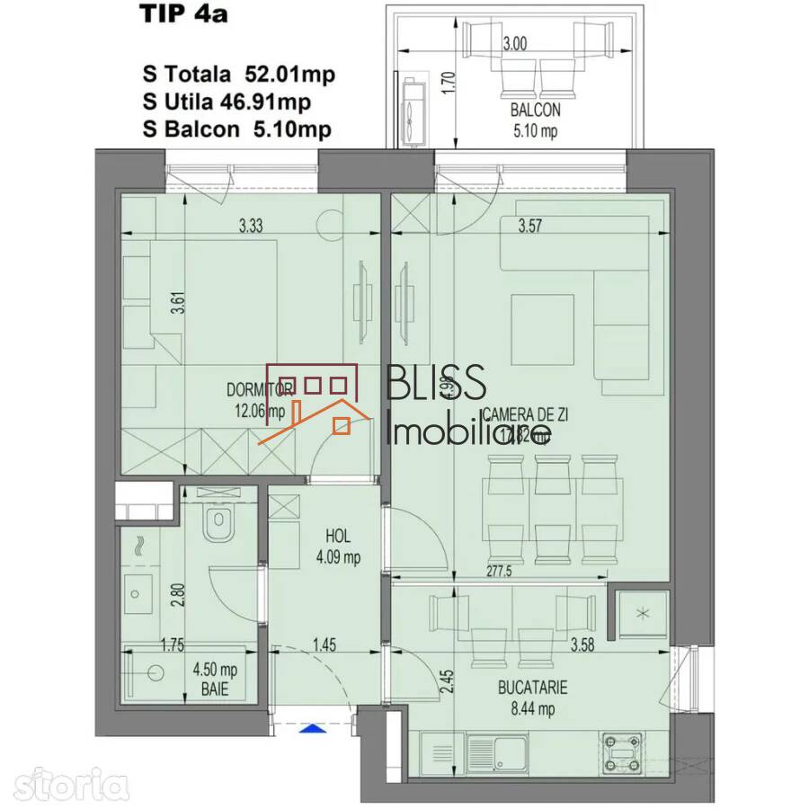 | Suprafață construită | 52 m² (3.308 EUR / m²) |