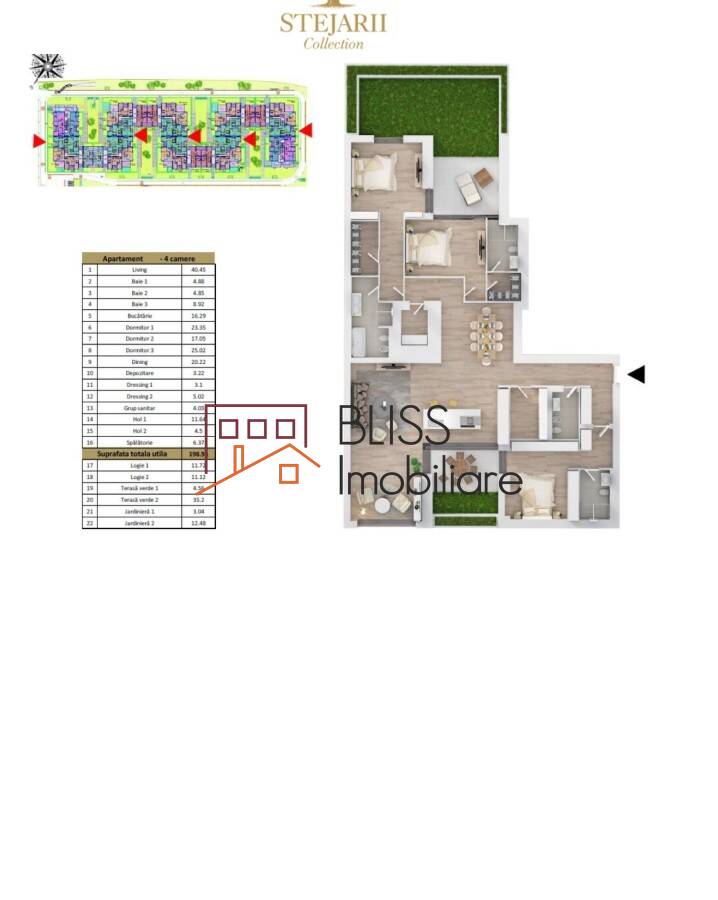 BLISS Imobiliare va prezinta un apartament foarte spatios de 4 camere, situat in noul complex rezidential de lux Stejarii Collection.