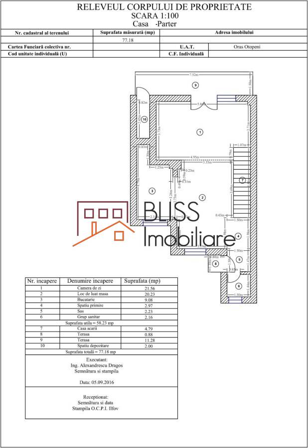- Parter (77 mp construiți, 58 mp utili):
