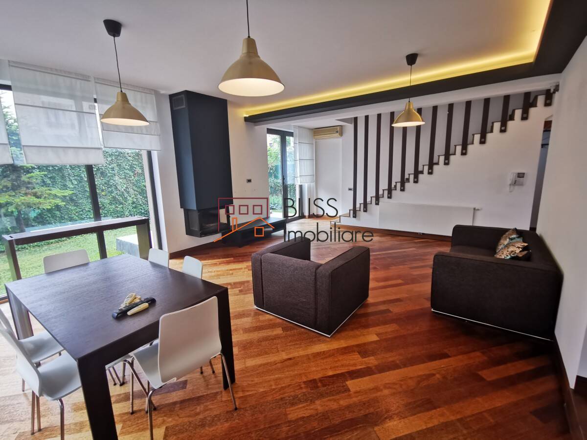 This unfurnished villa is a strong option for those looking for a well-laid-out home with practical indoor spaces and private outdoor areas. Arranged over ground floor plus two upper levels, the property offers 250 sqm of usable space in a residential compound of 8 villas, close to the OMV roundabout and Pipera Plaza.