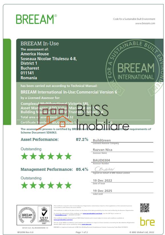 Spatiu de birou Clasa A | BREEAM In Use, suprafata de 554 mp, situat la etajul 7 in America House, Piata Victoriei.