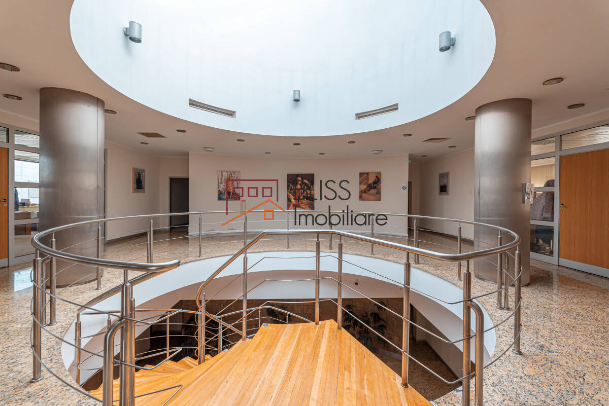 • corpul de cladire destinat activitatilor de birou desfasurate la parter și etaj, cu o suprafata de 1.414 mp care este alcatuita din 19 camere spatioase, sala de conferințe, 15 holuri, 5 grupuri sanitare, precum si o terasa extrem de generoasa