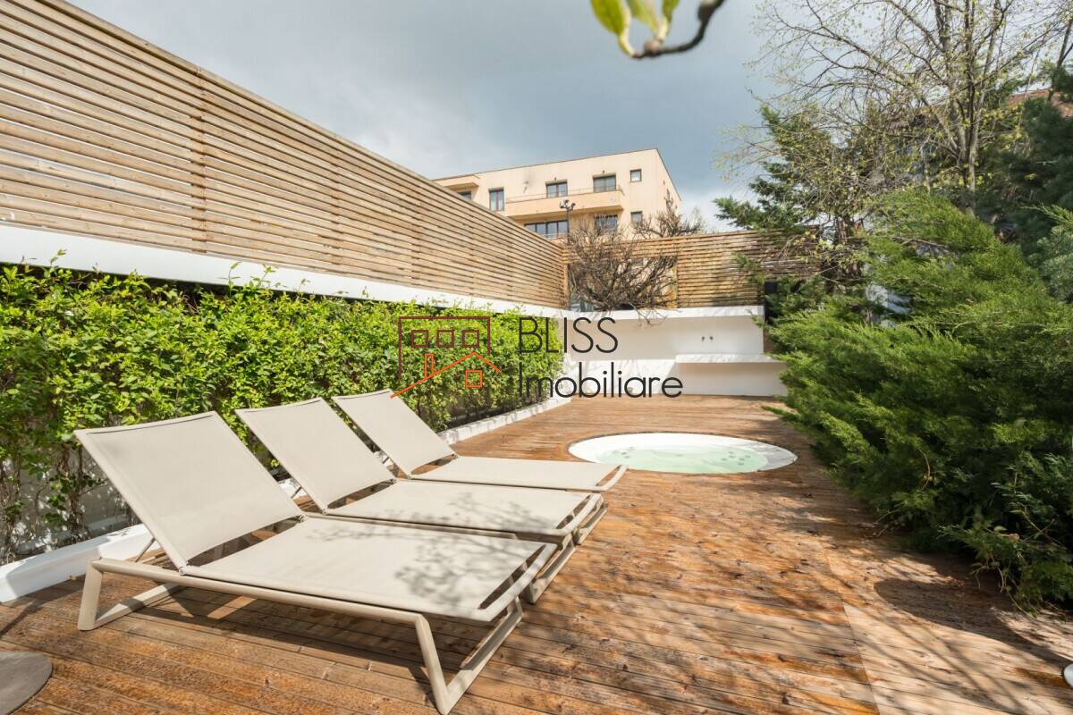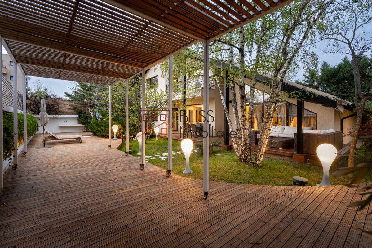- Grădină matură, amenajată cu rafinament, zone de relaxare și deck cu jacuzzi