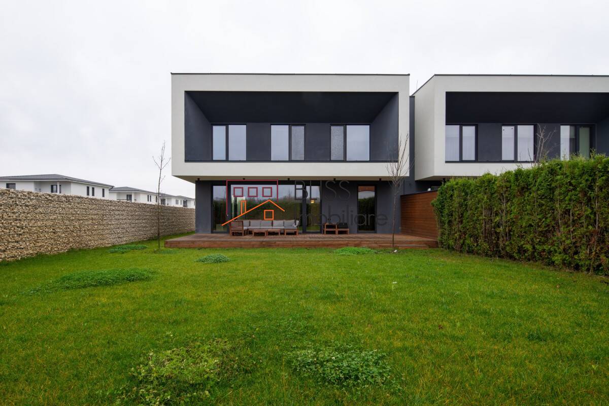 BLISS Imobiliare va ofera o vilă modernă, complet mobilată cu o structură eficientă pe două nivele. Vila are un living spațios și o bucătărie deschisă, 4 dormitoare, 3 băi, terasă mare și grădină orientată către sud.