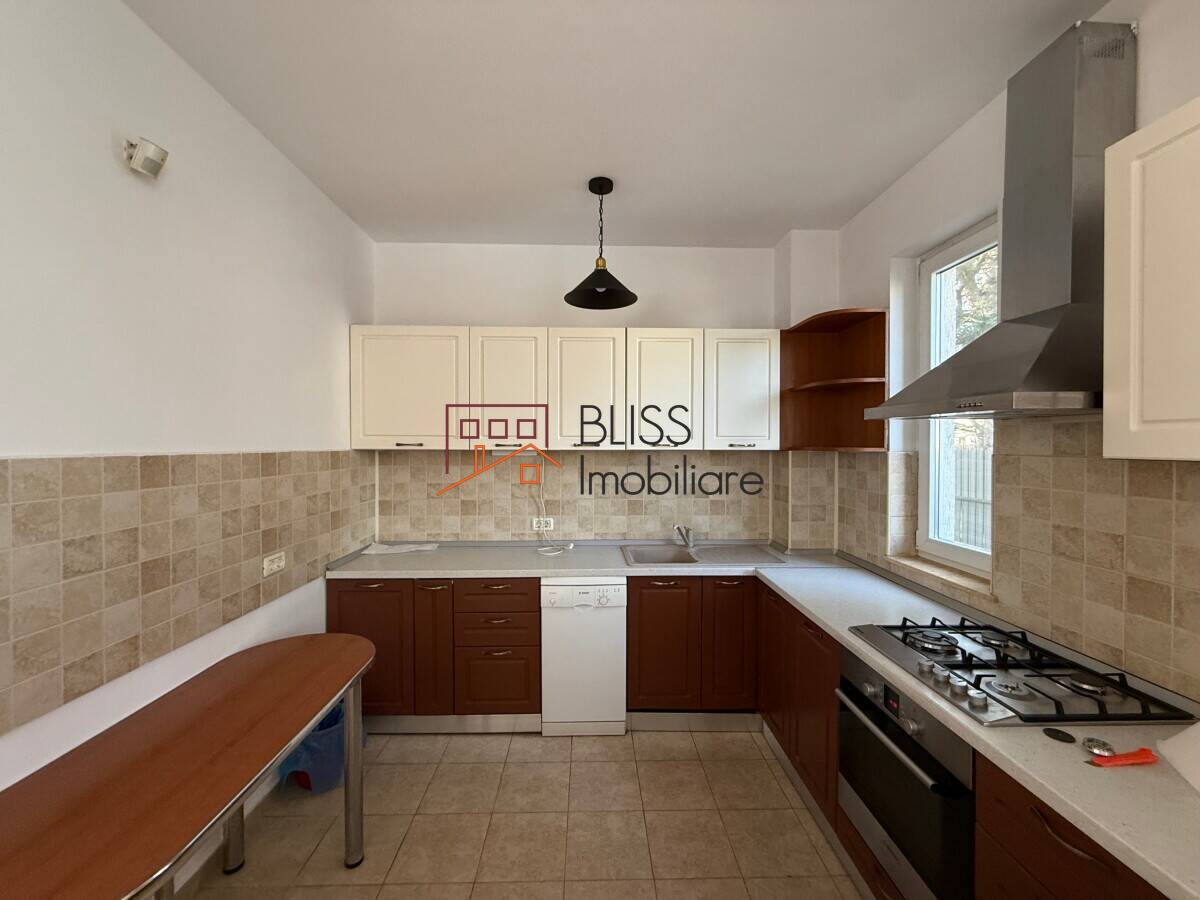 Vila este nemobilată, dar dispune de bucătărie complet echipată și mașină de spălat vase. Aceasta permite chiriașului să amenajeze și să personalizeze integral spațiul după propriile preferințe.