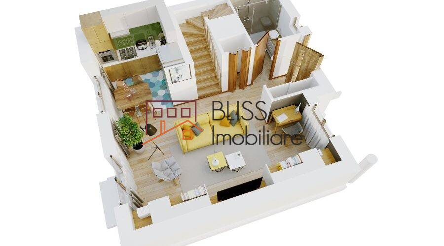 - Parter: ~ 50 mp construiți, living spaţios cu acces către gradină, bucătărie deschisă, grup sanitar cu cadă și spațiu special pentru mașina de spălat, windfang cu spațiu depozitare, debara.