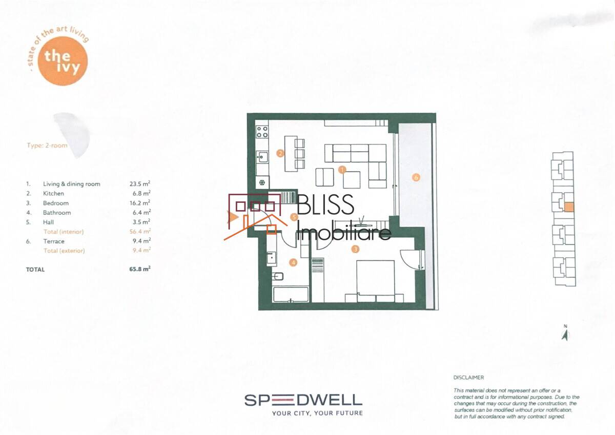 Cu o suprafață utilă de 56,4 mp, locuința este gândită pentru un stil de viață practic și confortabil, oferind un spațiu bine organizat și ușor de adaptat nevoilor cotidiene. Apartamentul include un living primitor, un dormitor confortabil, baie, bucătărie echipată și balcon, fiecare zonă fiind concepută pentru a susține un ambient plăcut și eficient.