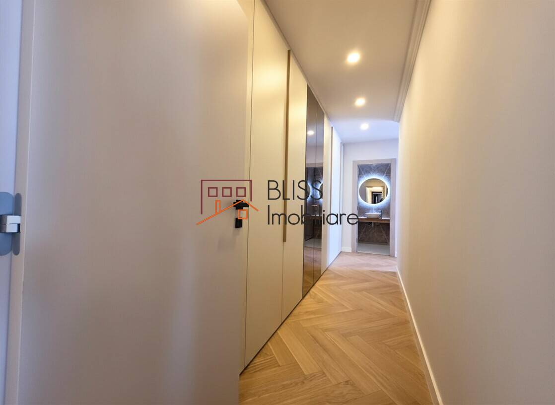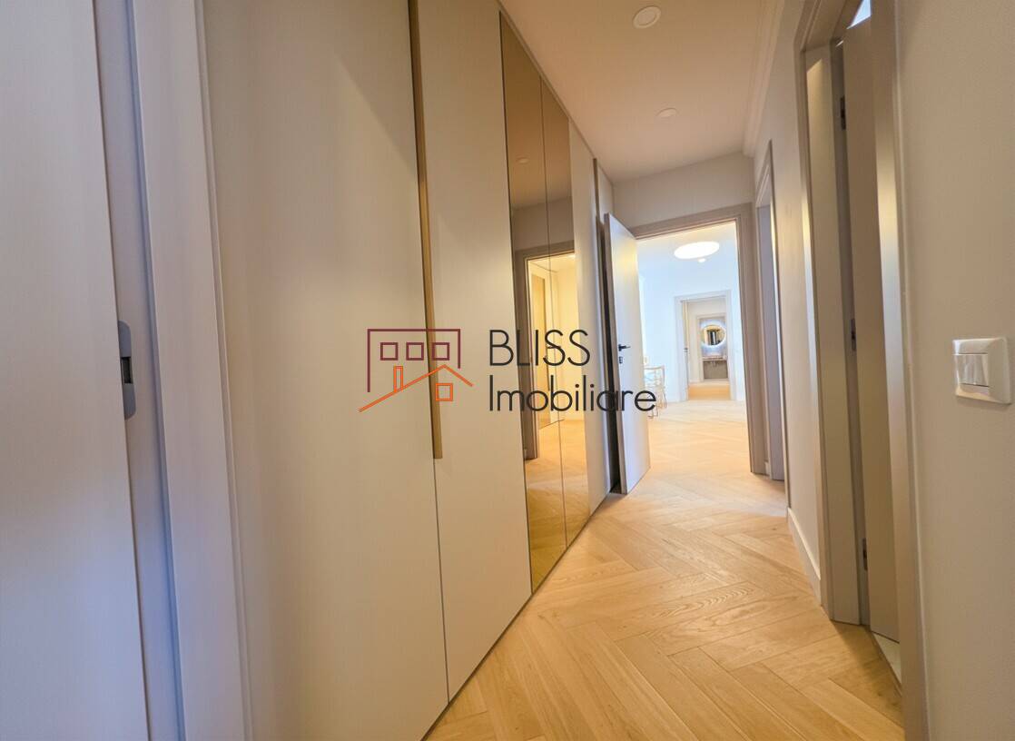 Apartamentul dispune de 3 dormitoare, dintre care două cu dressing integrat. Proprietatea este mobilată complet la standard high-end, cu bucătărie echipată și mașină de spălat vase inclusă.