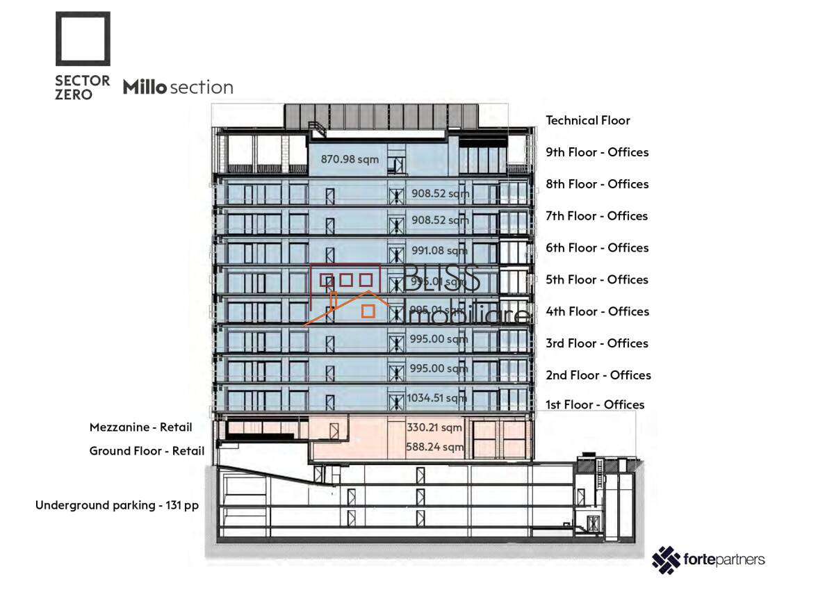 Class A office space with an area of 491 sqm, located on the 1st floor located in Millo Offices, very close to Novotel Hotel and Calea Victoriei.