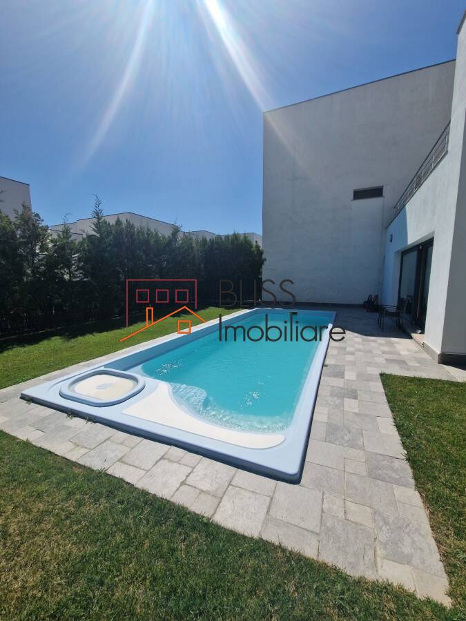 Modern villa with swimming pool located in wonderful small complex of 10 villas near the British School of Bucharest in Baneasa Pipera.The house is very well divided into a living room, modern open kitchen, guest toilet, garage for two cars, laundry/technical room on the ground floor and four bedrooms, four bathrooms, large terrace, balcony and dressing room on the first and second floor.