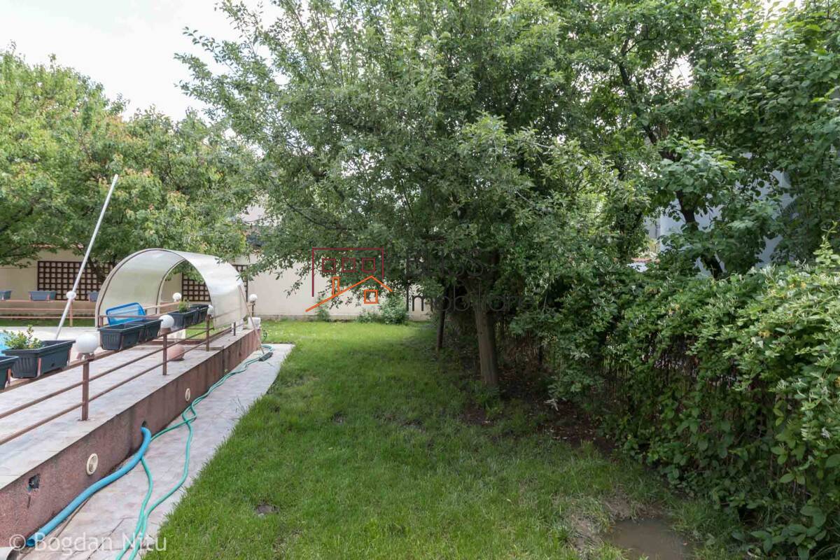 It is located on a plot of 1,000 square meters, with a footprint of 300 square meters, thus the garden has a generous area of 700 square meters. Also in this superb courtyard we also find a large swimming pool, a specific place for relaxation and tranquility, but also an indoor sauna, which helps to detoxify the body, contributes to improving circulation and reducing tension and beautifies the skin.