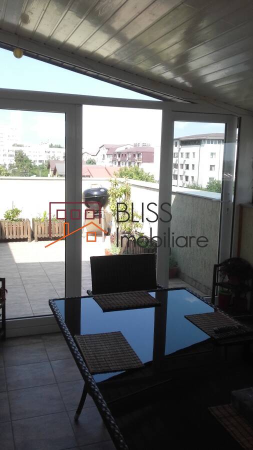 Apartament complet mobilat situat la mansarda unui bloc cu o singura scara, compus din 3 camere, suprafata 100,29 mp (65,39 mp utili + terasa 28,29 mp si balcon 6,61 mp).