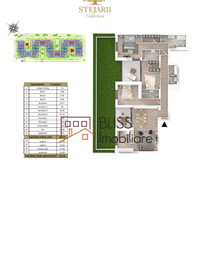 BLISS Imobiliare va prezinta un apartament foarte spatios de 4 camere, situat in noul complex rezidential de lux Stejarii Collection.