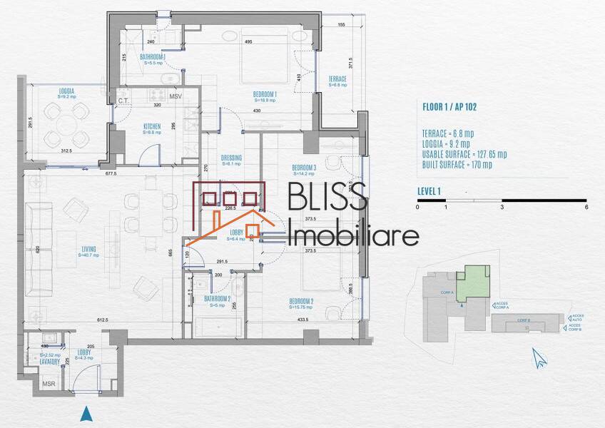 As you leave the reception, you’ll immerse into the cozy ambiance of the place. As you walk further, you’ll notice the spacious underground parking, with 46 parking places. And the two buildings: the first one with 8 floors, the second one with only 6. We hope you will enjoy the intimate feeling of this place, especially designed to respect your privacy and make you feel as comfortable as possible.