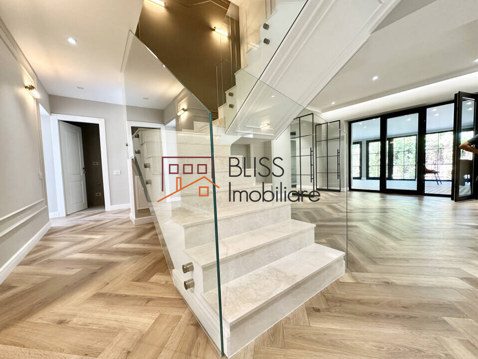 Fully renovated in 2024, this exquisite villa is located in the prestigious Oxford Gardens gated community, at the edge of the forest in Pipera, one of the most desirable residential areas in northern Bucharest. Combining luxury finishes, generous space, and a functional layout, this home is perfect for modern family living or as a high-return investment.
