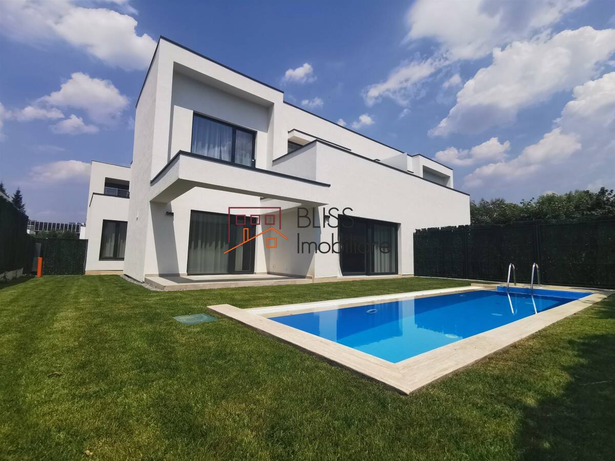 BLISS Imobiliare va prezinta o vilă cu 5 camere și piscină, modern mobilată, amplasată într-un complex de case exclusivist, în zona Iancu Nicolae, Pipera.