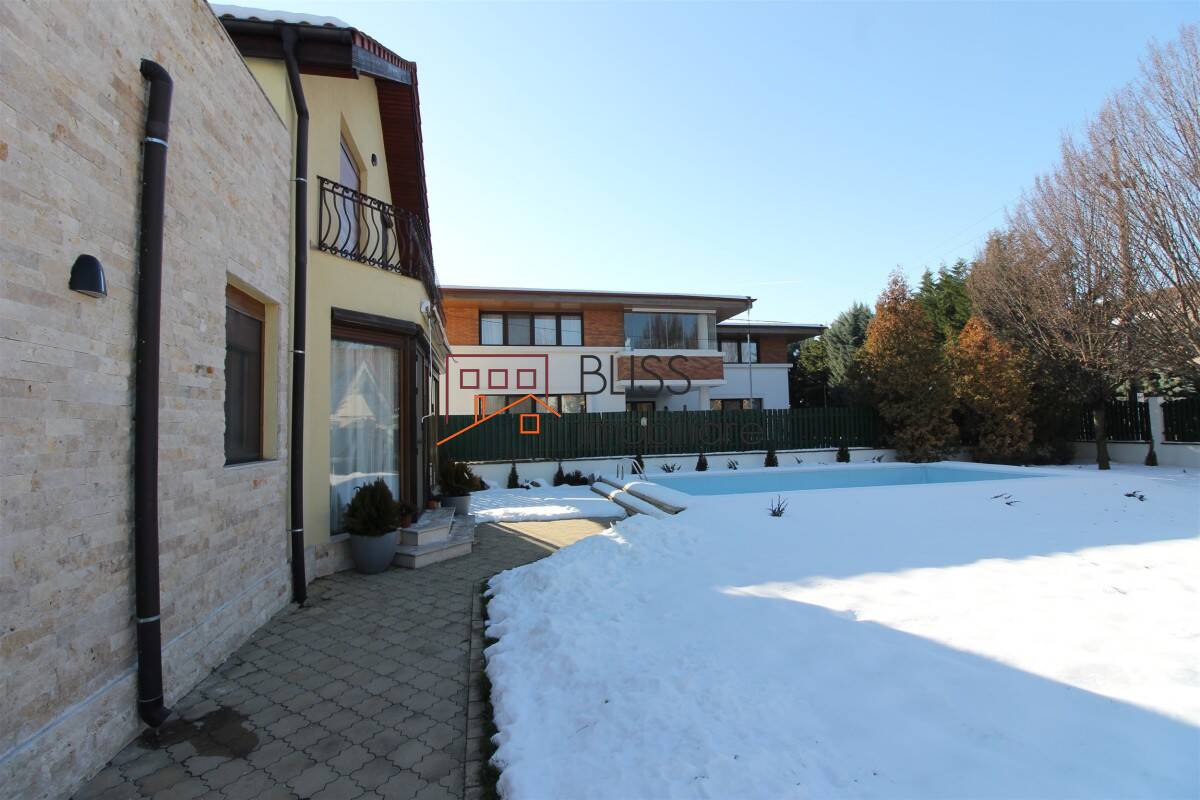 Vila de lux cu 6 camere cu suprafata utila de 370 mp si gradina de 750 mp, cu piscina de 40 mp. Aflata in zona Jolie Ville/Iancu Nicolae in un complex rezidential.