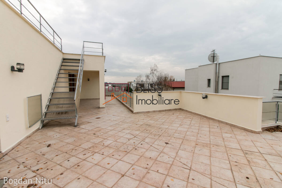 Finisaje: Podele (Parchet, Gresie, Marmura), Usi interior (Lemn) - Alte detalii: Vila cu terase ample, camere foarte mari, arhitectura moderna, pretabila pentru familli cu multi copii situata intr-o zona foarte linistita.