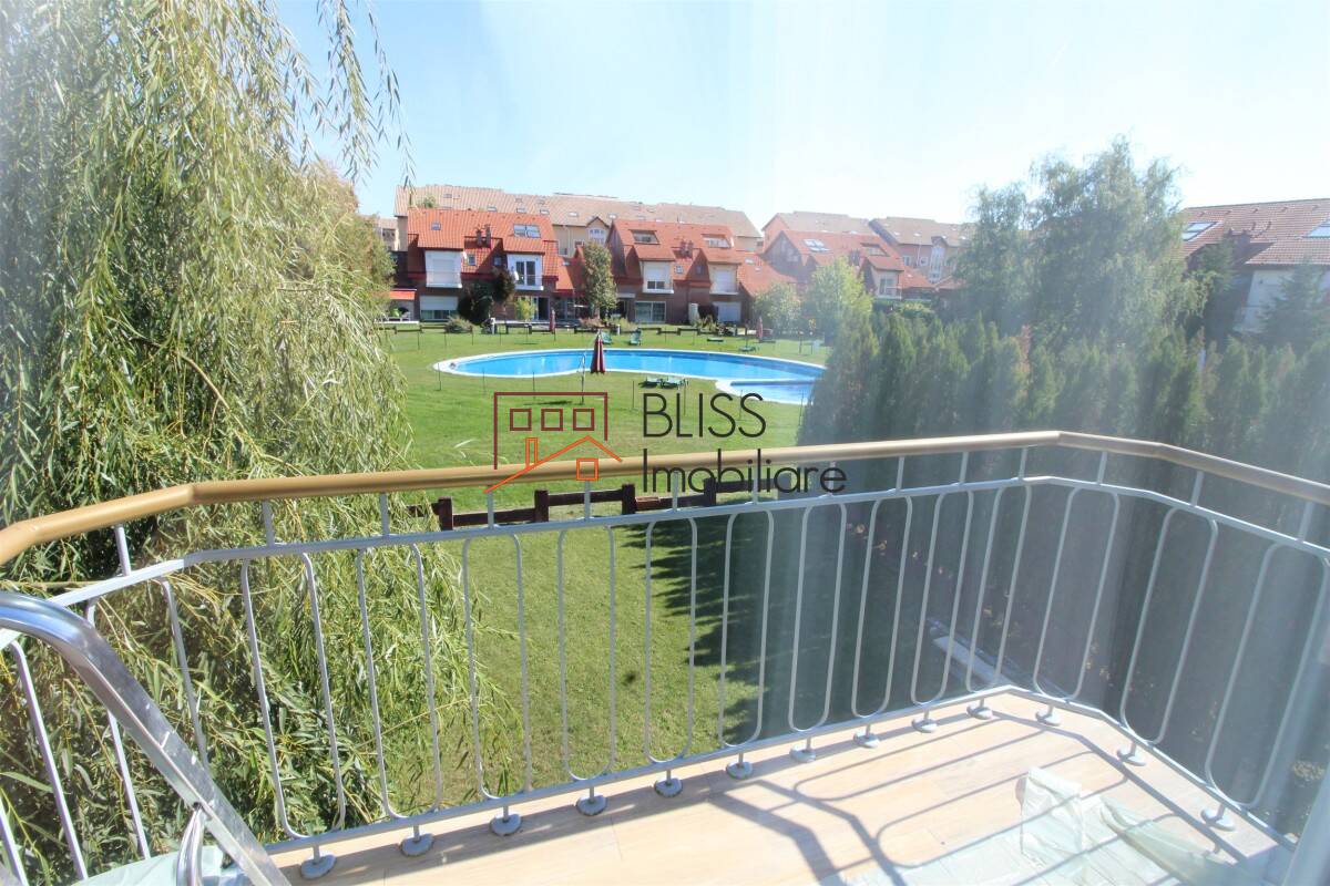 Vila P+1+M cu o suprafata utila de 300 mp, este situata in spatele Scolii Americane, intr-un complex care se intinde pe o suprafata de 10000 mp de teren pe care se afla 2 piscine comune amenajate atat pentru copii cat si pentru adulti, loc de joaca pentru copii, mini teren de golf, dispune de serviciile de administrare si paza permanente.