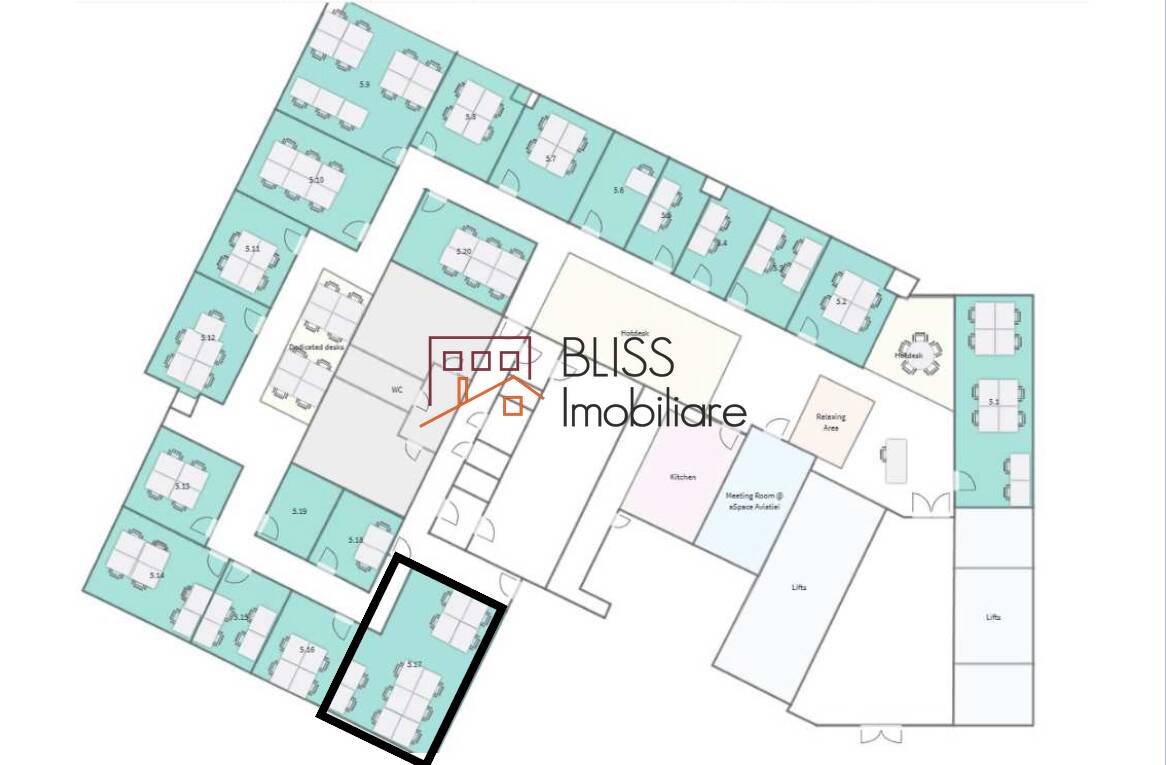 Situat în clădirea de birouri din Barbu Văcărescu 301–311, în plin cartier de business Aviației – Floreasca, Office 5.17 are o suprafață de 38 mp și este conceput pentru a acomoda echipe de 10–12 persoane. Spațiul este complet mobilat și echipat, gata pentru a susține activitățile unei companii dinamice care caută un mediu reprezentativ și eficient.