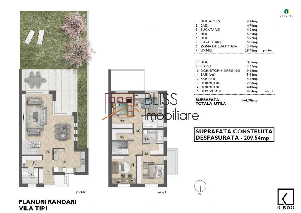 BLISS Imobiliare va prezinta o vila luminoasa si moderna de 5 camere, situata in ansamblul rezidential Zenville, zona Pipera Nord.